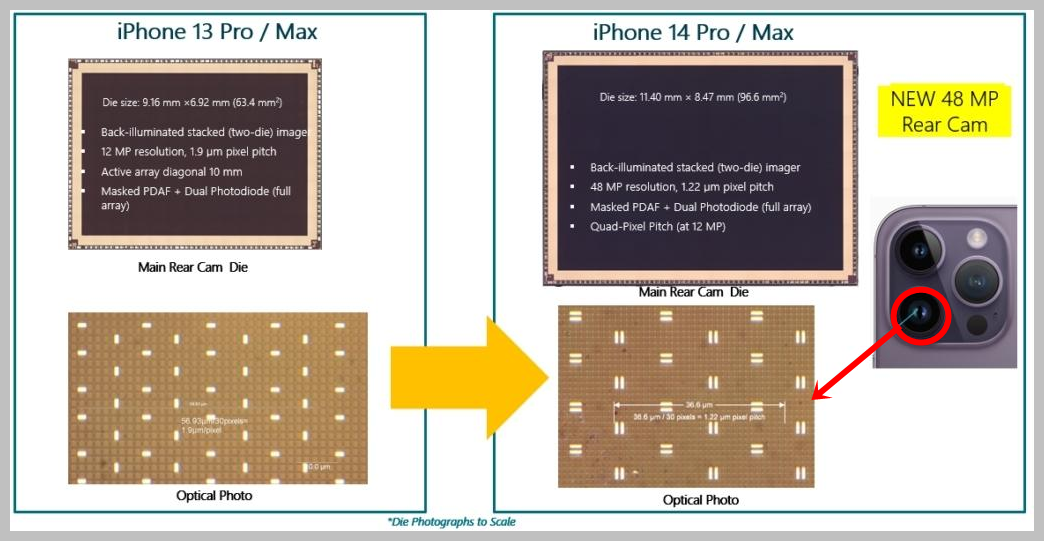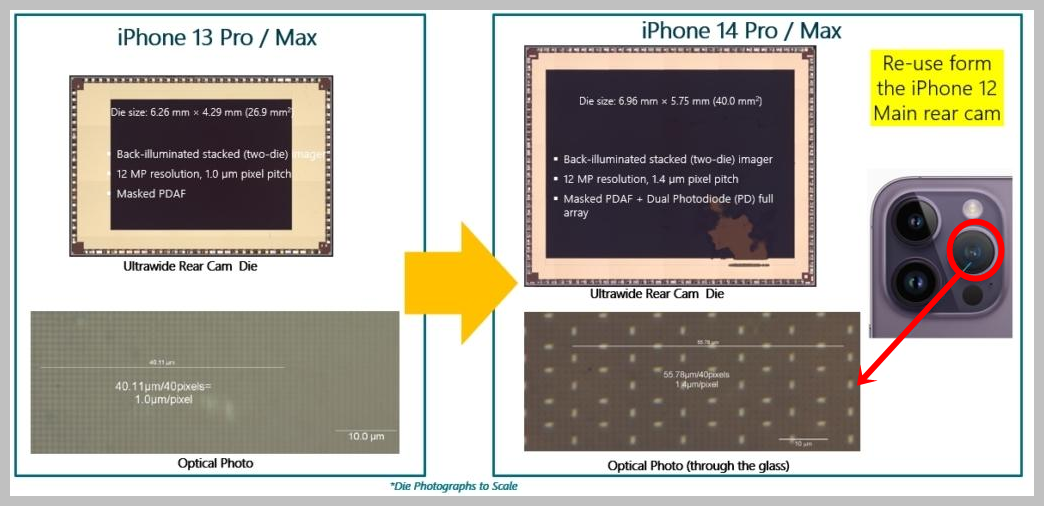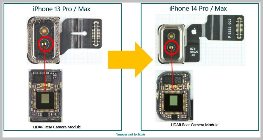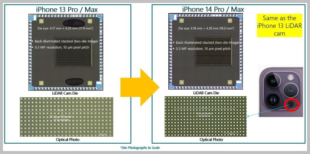 0.3MP, 10µm 픽셀 크기를 갖춘 iPhone 14 Pro/Max LiDAR 카메라는 iPhone 13 Pro/Max LiDAR와 동일한 다이입니다